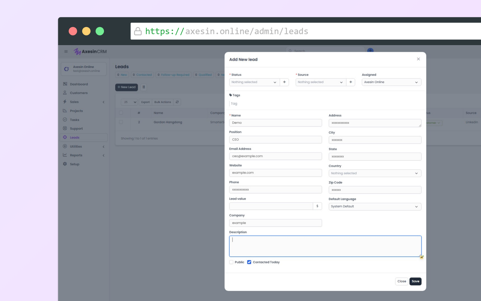 Click → "New Lead"