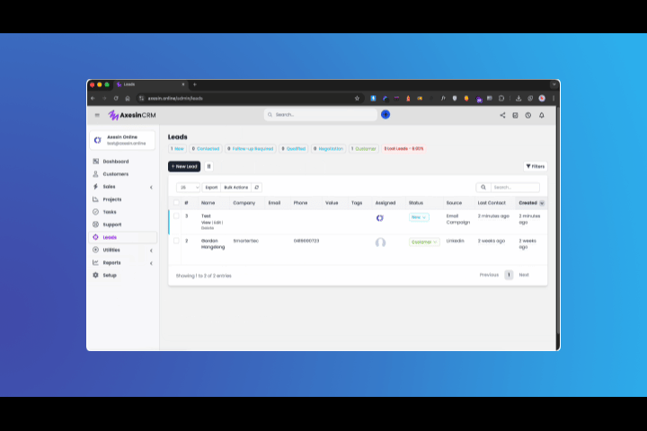 When you open a lead, you gain access to a centralized operational dashboard including: